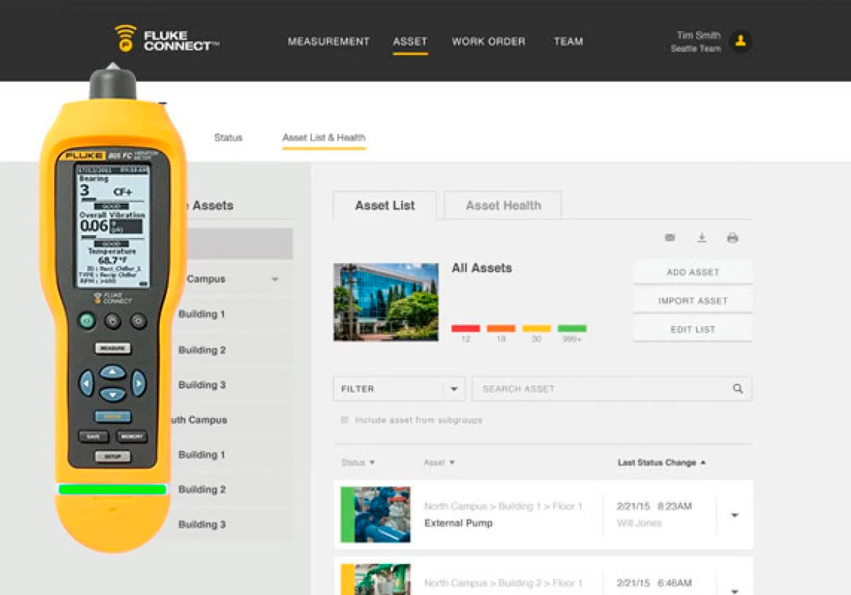 Crie rapidamente a lista de ativos e a ordem de serviço em seu PC, configure perfis de máquina usando o aplicativo Fluke Connect em seu dispositivo inteligente e envie rotas para o 805 FC para seus técnicos em campo.